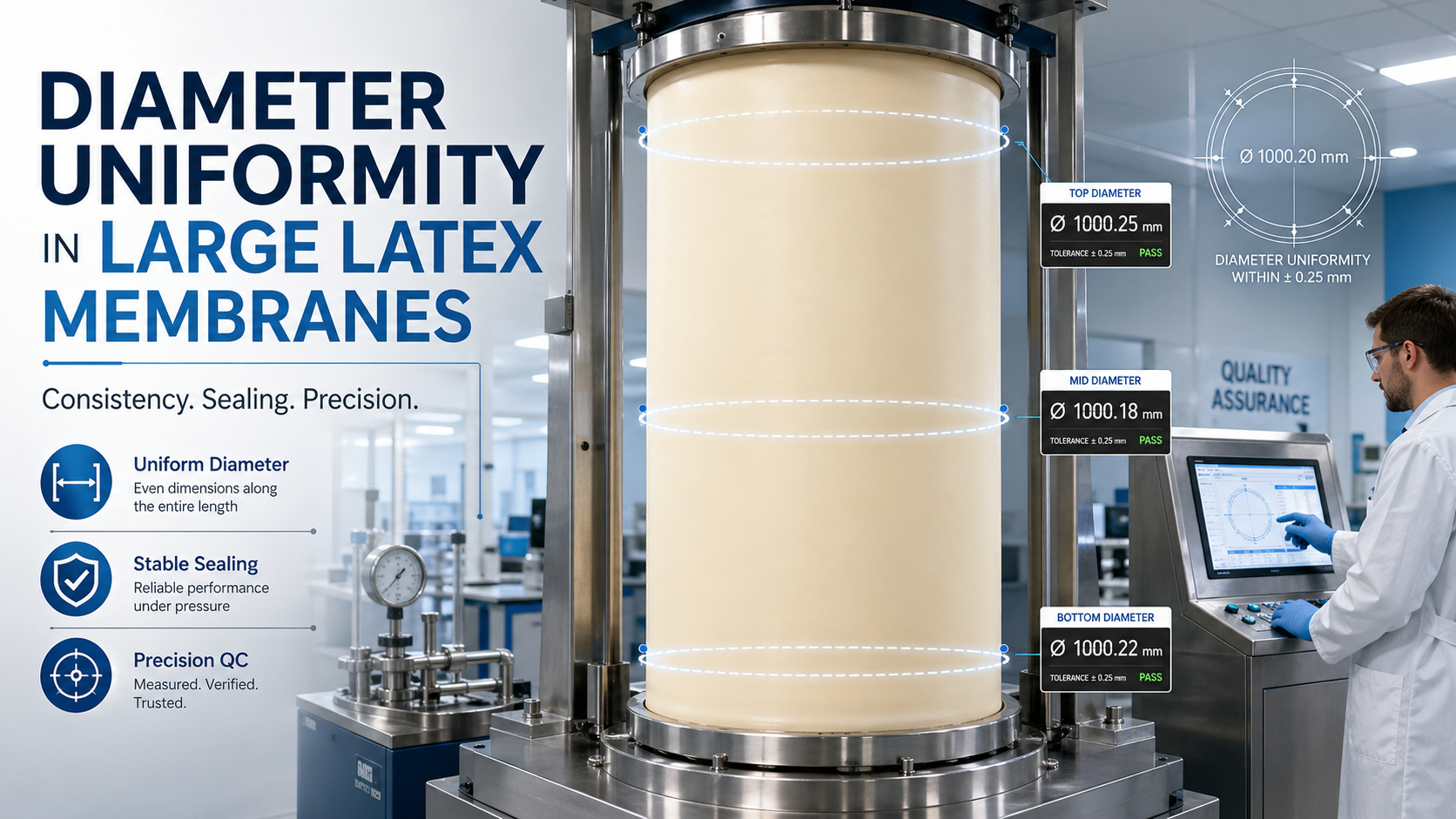 Diameter uniformity in large latex membranes controls sealing, wrinkle risk, and stress transfer. Better uniformity means fewer leaks, cleaner deformation, and more trustworthy data—especially in large-scale cells.